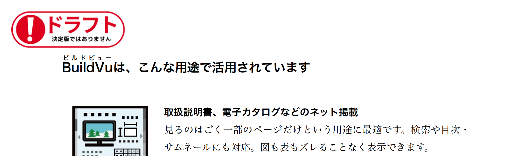 作成途中や校正中のドキュメントをPDFで配布する場合、配布しているドキュメントが「最終のものではない」ということをしっかりと伝えておかないと間違った情報が伝わってしまう可能性があります。そのような間違いを起こさないために、配布時にシステムでドラフトであると言った画像を差し込んで解決できます。