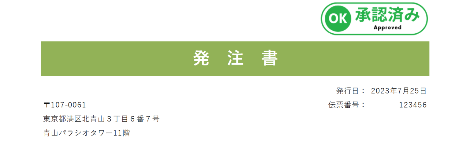 発注書が承認されたかどうか、発注書のPDFに承認後、承認マークをプログラムで挿入することで、発注書が承認済みかどうかを確認できます。一般的には作成した発注書を印刷し、承認者への承認印を押し、再度スキャンしてPDF化、発注済みのPDFとして保管というデジタル処理とアナログ処理が混じって効率的に処理できません。